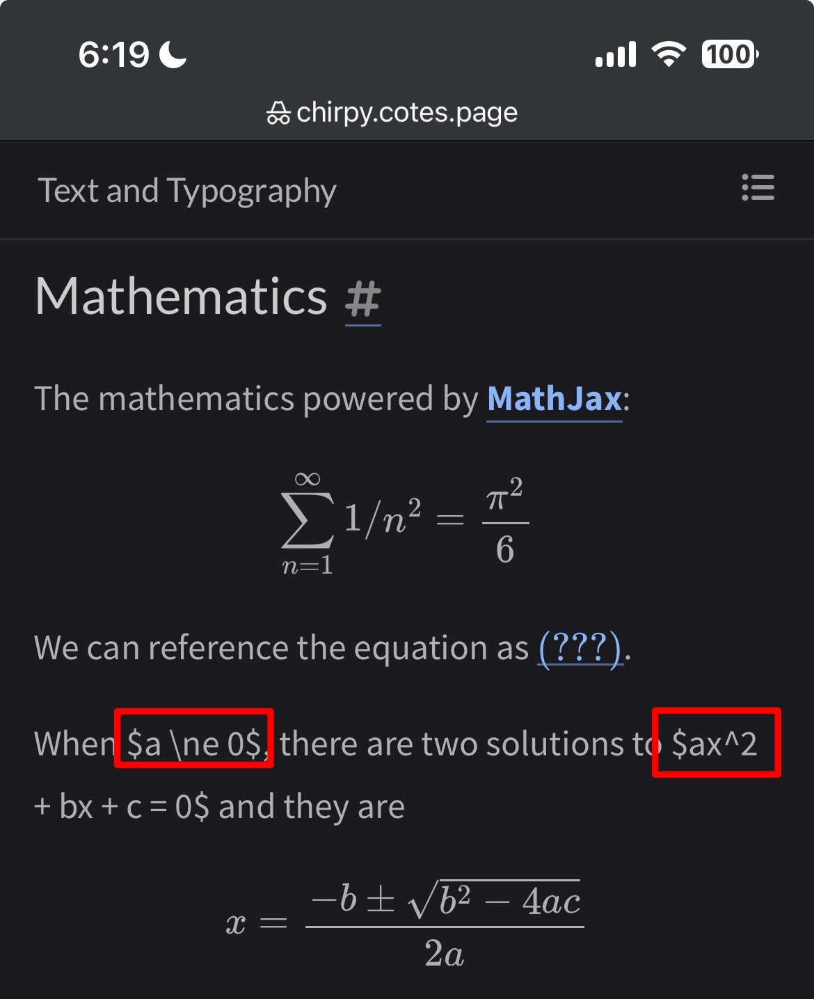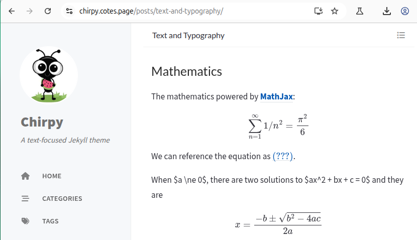 , the mathematical notations would be partly broken and won’t render correctly. It’s noticed that even the same behaviour can be observed from the theme demo itself